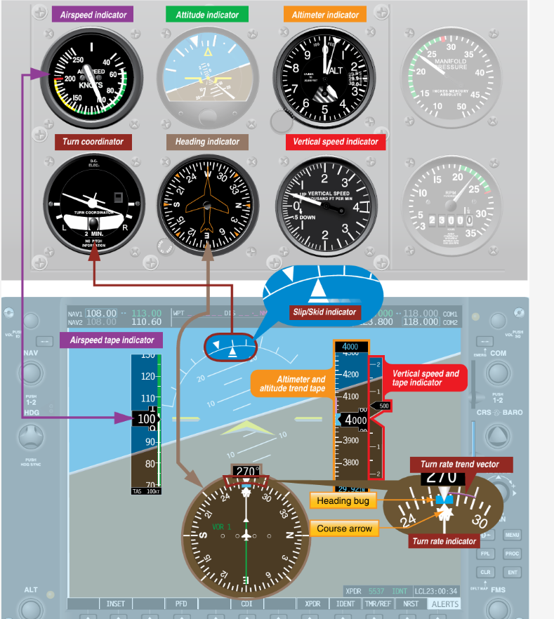기본 6계기 (Six Pack)를 중심으로 설명해드리겠습니다.