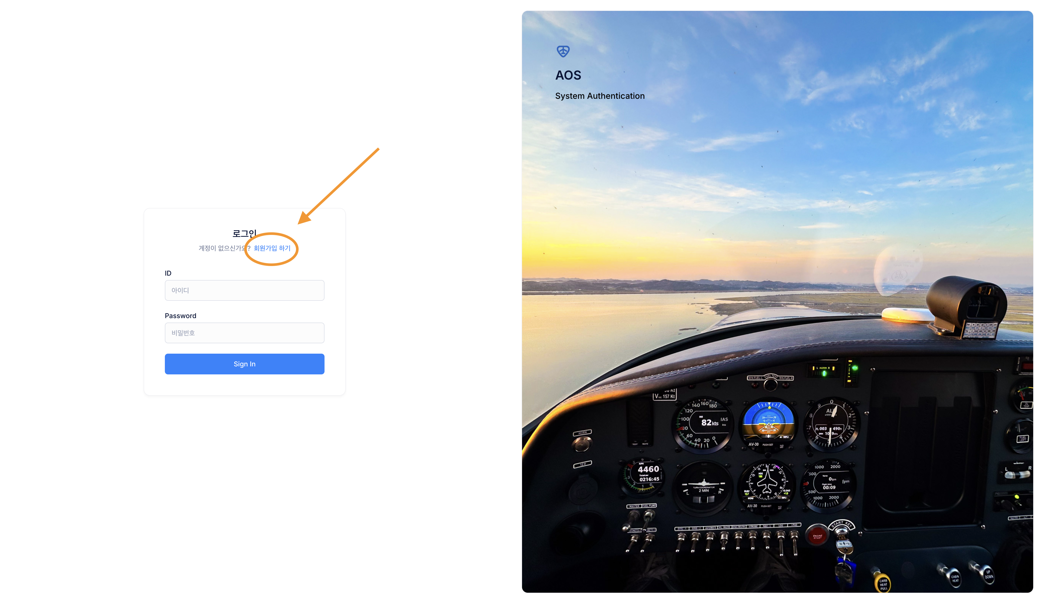 https://aos.skynuriaviation.co.kr 에 접속합니다.