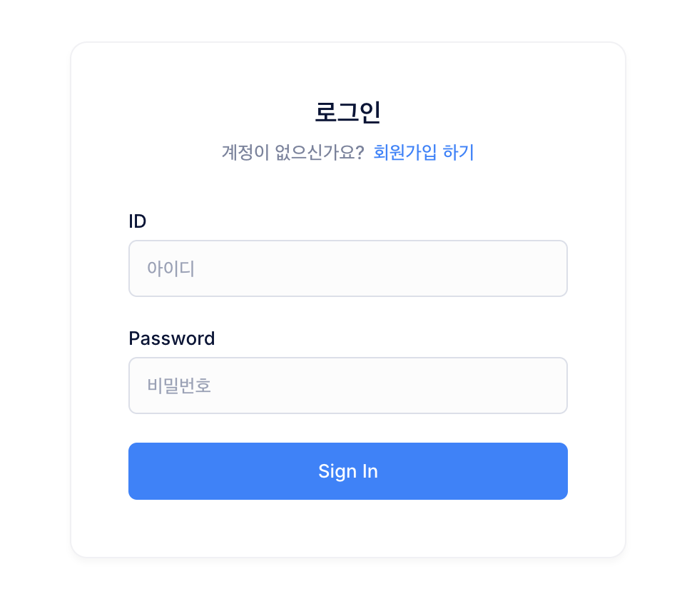 이후에 가입한 아이디와 비밀번호로 로그인 합니다.